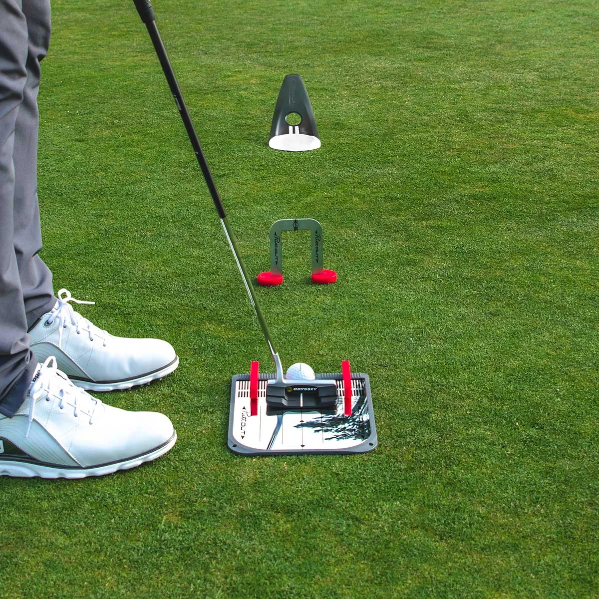 The PuttOUT Putting Mirror Trainer and Alignment Gate is a simple-to-use golf training aid to help improve your putting by correcting your alignment and positioning in real-time.